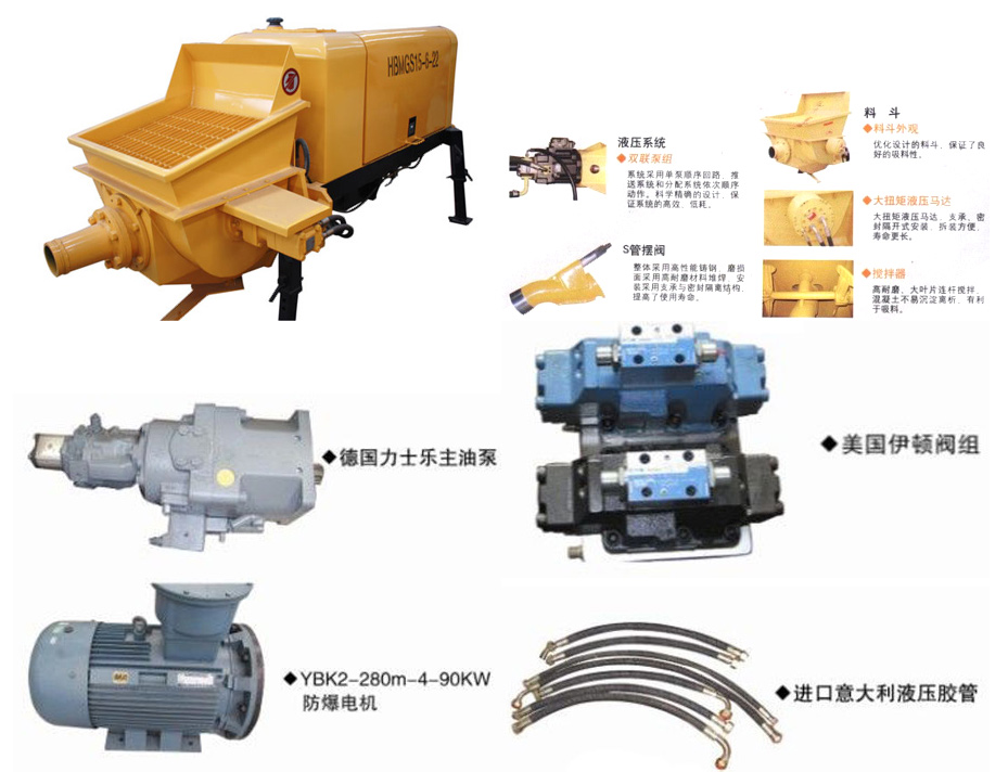 HBMD15/6-22S為隔爆、全液壓型煤礦用混凝土泵,采用電機驅(qū)動,防爆類別為:廣泛適用于煤礦井下工作環(huán)境。